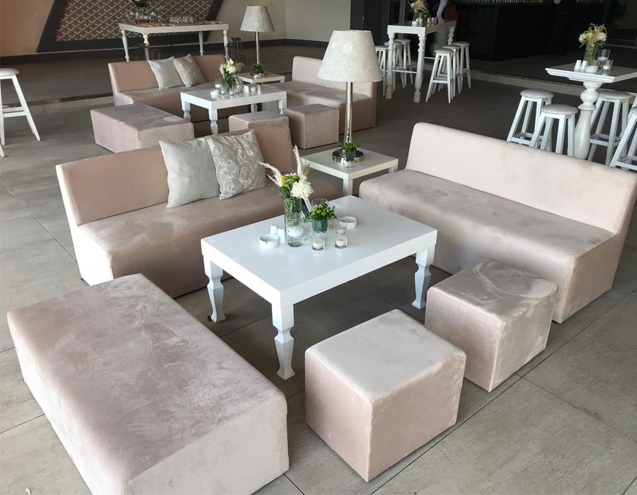 - Etkinlikler ve Organizasyonlar: Düğün, nişan, iş yemekleri gibi etkinliklerde puf, sedir, sehpa, lake masalar ve ışıklı bistrolar gibi şık seçenekler kiralayarak ortamınızı güzelleştirebilirsiniz.